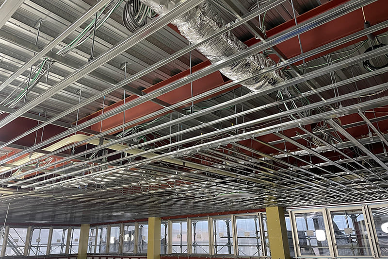 LGSは、軽量鉄骨を用いた内装の下地材で、壁や天井の骨組みに使われます。耐久性に優れ、施工性も高いため、オフィスビルや商業施設など幅広い現場で採用されています。