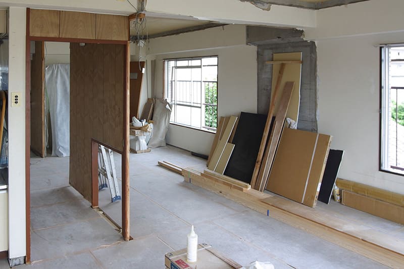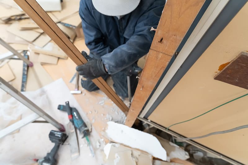 当社では、マンションやテナントなどの内装解体工事も承っております。リフォームやリノベーション工事を行うために、今ある建物の壁紙やフローリング、ボードなどを取り壊し、撤去する作業です。新たに建築物を建てる・改装するためには、まず古い内装を解体することが欠かせません。「新しいを建築する」ために、必要不可欠な仕事になります。